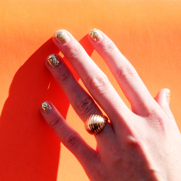 As for the polishes themselves, they include Fireball (crimson chunky glitter Nick thinks Diana Vreeland would appreciate), Party’s Here(a clear polish with silver glitter that, press materials note, “reflects a subtle pastel rainbow”) and the fascinatingly named I’m a Gold Mind (gold glitter), which Alessandra believes is a typo and should have been written “I’m a Goldmine'...not that that makes much more sense. (Or, is this a Jersey Shore inside joke that we're outside of? Tell us!)