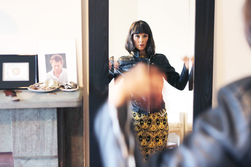 There’s some punk, too, especially in my jewelry. I like a punk vibe, but I don’t want it to be ‘St. Mark’s [Place].’ My idea was that I wanted to load the ear up with a bunch of hoop earrings that had spikes on them that were manageable. I started my line in 2007, and the first pieces I made were pyramid rings. It had that St. Mark’s vibe, but it was higher quality. Then I started making leather handbags, and now I have a small ready-to-wear collection as well. I love to figure out how to make something, how to put together the parts in an interesting way to make a whole. We make everything in our Sullivan Street store, and we just opened up a second store on Mott Street.