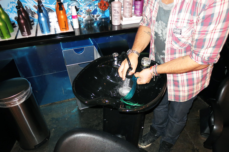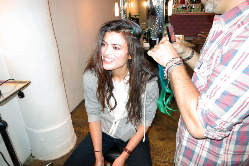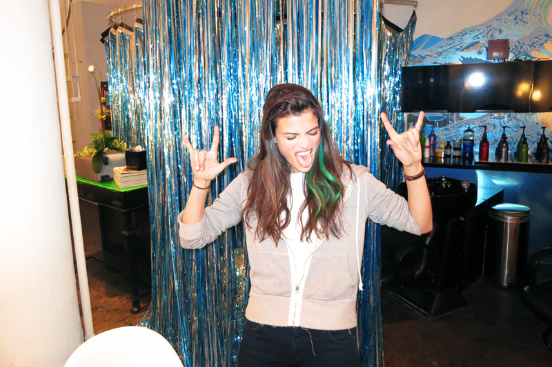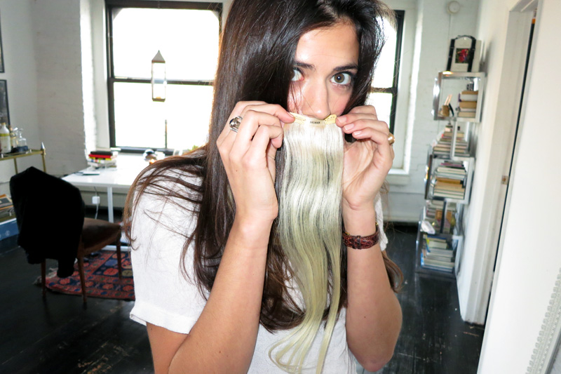 Though the added oomph was neat, the Balmain clip-ins offered another, more tempting opportunity: stress-free color experimentation! Whereas it would take multiple processes (/stripping) to turn a streak of my natural dark locks to my requested “Disney-aquatic blue fading into hunter green” shade (what can I say? #YOLO, etc.), doing it to my new hair extensions was risk-free and took about half an hour. Michael grabbed a Scandinavian-blonde pack of hair and a paintbrush and got to work with a series of dyes while I browsed the beauty-product selection. Twenty minutes and a quick shampoo/conditioning/blow-dry of the clip-ins later, Michael staggered the Skittle-colored extensions along the left side of my head in two tiers and flipped my real hair over it. The color was subtly visible, fading in and out of view underneath my real hair. (I have to admit I clapped a little, like an excited seal. This is how limited my experience with hair color has been.) I left the salon and wore them around all day waiting for someone to say something. Nobody did. Nick, however, did tell me, “They're really not very you,” in a way that made me hate him a little (which isn't to say he was wrong)—but hey, that's the great thing about clip-ins! Try before you buy! No regrets, that's my motto.
