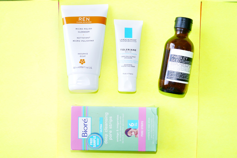 For skincare : Aesop’s Anti-Oxidant Facial Toner is easy-peasy and will leave both of you feeling squeaky clean. La Roche Posay Toleriane Riche cream is inoffensive, unassuming, inexpensive, and packs a serious moisturizing wallop. Kiehl’s Ulta Facial Oil-Free Lotion is a good, quick-absorbing masculine bet (you can imagine Steve McQueen stowed it in his medicine cabinet). Ren Micro Polish Cleanser looks unisex and exfoliates like crazy, which is something he won't probably admit to thinking about, but does—and further, Bioré Deep Cleansing Pore Strips (a GQ pick) are easy, very basic and secretly kind of fun. Think of it as a couple's project.