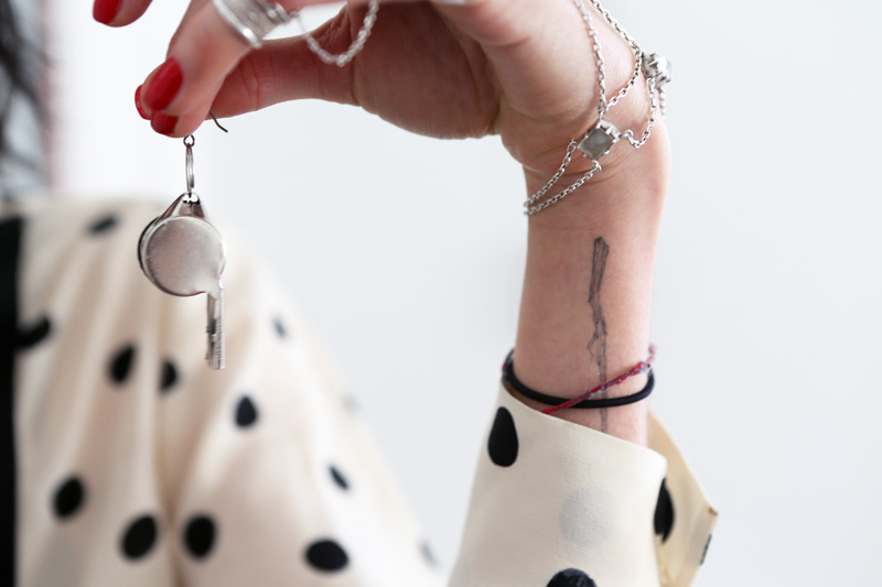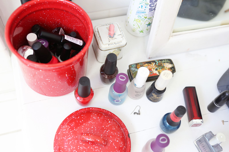 I always do my own nails—now I’m wearing Big Apple Red by OPI. My nails all broke during the holidays—usually they’re really long—which is really sad. I try to paint them every few days since I also like to pick off my nail polish. I like OPI’s because you can get a nice, clean line with their brushes; it’s one of the nicest brands to paint with. I would say I’m obsessed with nails, but not in a, ‘I put art all over them’ kind of way—more like ‘I want them to be long and creepy/witchy.’ I’m just kind of obsessed with my hands, in general, maybe because I draw, so I’m looking at them all day.”