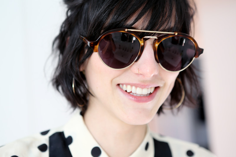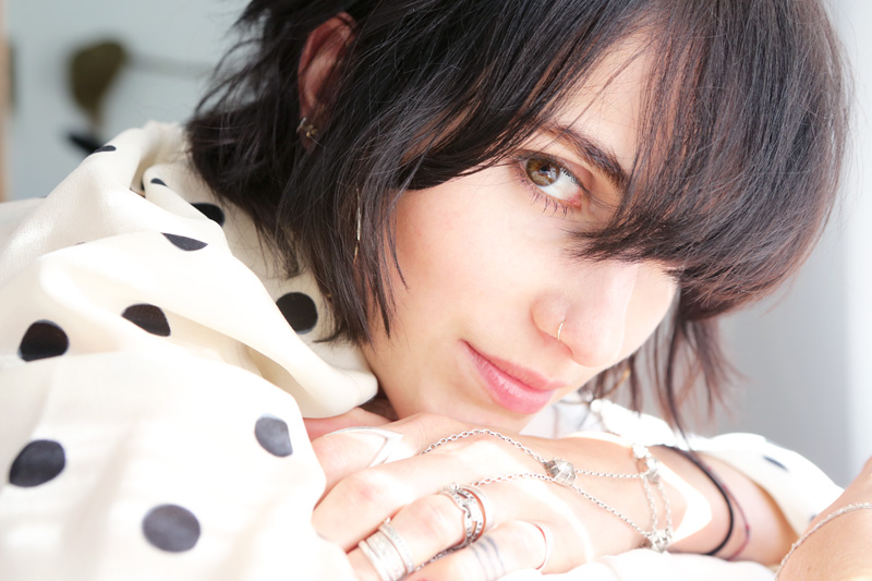 I dye my hair once a month—it’s almost black. I’ve been going to the same woman in the Valley, Cher at Guy Matthew in Agoura, since I was seven. She knows me. It’s semi-permanent dye—I have ash-blond hair naturally, so when it starts growing out, it looks like my hair’s floating, and that’s not cute. I first started dyeing it when I was seven: my mom was on a movie set and I asked if I could cut my hair this short [a few inches] and dye it bright red. She said, ‘Cool,’ and I went, like, fire-hydrant red. It was so funny; I looked like a little boy. And then I tried every color: in fifth grade, I bleached it and did blue streaks, then it was dark purple, and for sixth-grade graduation, I had fuchsia hair. Around tenth grade, I started dyeing it black myself—it was more blue, not black—so I went back to the hairdresser. I don’t know why I was so into dyeing my hair crazy colors—I was so shy, I didn’t talk. It was like, my only way to be myself was to do my hair. And then I just got an addiction to it.