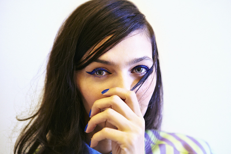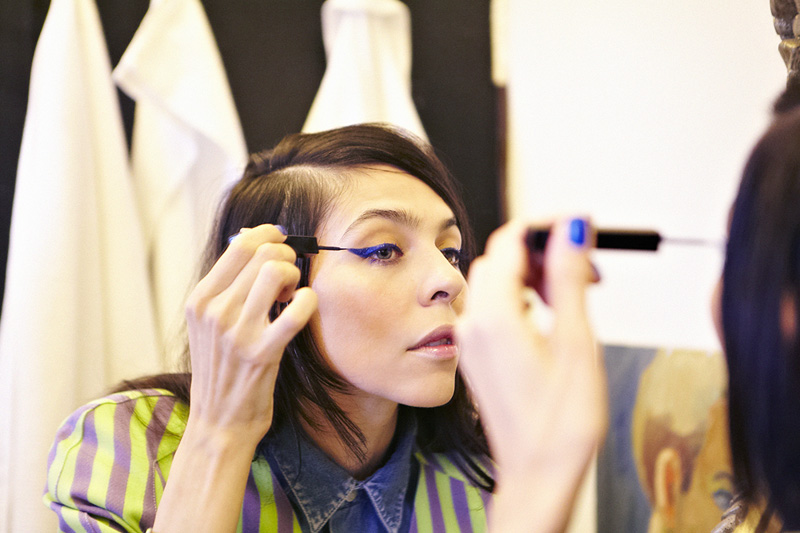 Currently, my favorite way to wear liquid liner is in shocking jewel-tones; a cobalt blue line with deep violet lashes rocks my boat in a major way. Vivid blues and violets are like neutrals on the eye, very easy to wear and match any look. Soft emerald liner with sapphire blue lashes makes me want to die...SO BEAUTIFUL. Really, any colored liners or mascaras are absolutely rad and actually pump life into all complexions, making skintone radiate and your eye color awaken from the dead. To balance a jeweled eye, keep the rest of the face bare, almost non-existent, just moisturizing to make skin soft and touchable (but don't let anyone touch your skin). Use diluted color on the lips with fresh blush colors on the cheeks.