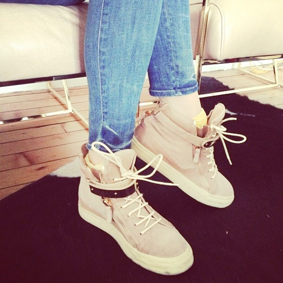 Also, her Giuseppi Zanotti sneakers matched our new chairs.