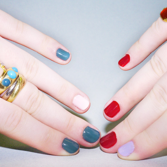 Though my nails have seen better days—they’re a bit short and jagged, but I chalk that up to pre-fashion-week nail biting—they are looking pretty snazzy decked out in the new limited-edition set. I’ve always thought, much like a guy’s shoes can tell you everything you need to know about him, nails can tell you everything you need to know about a girl…. And I’d like to think mine are now giving off the ‘trendsetter’ vibe—not schizophrenic in the least…right?