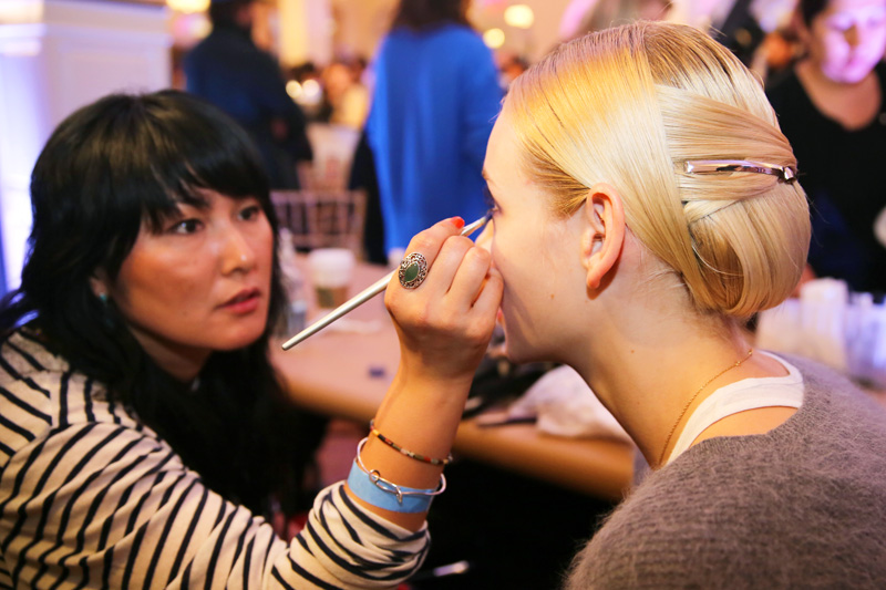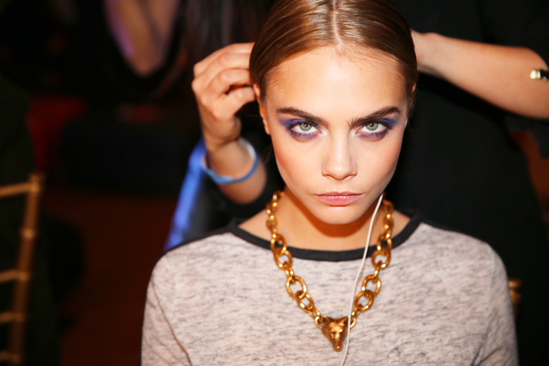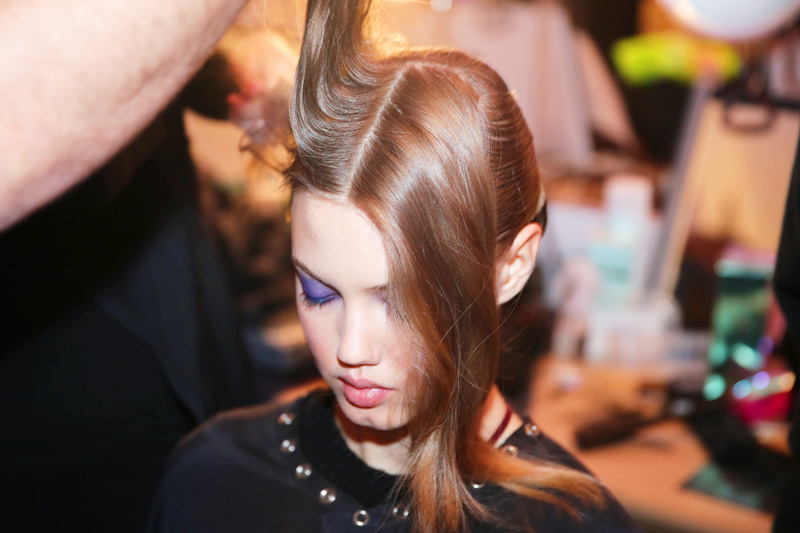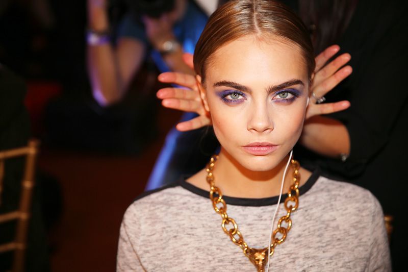 Can we just say that as much as we love ‘no-makeup makeup’ (and of course, it is extremely chic to appear as effortless as possible), we can really get into makeup- makeup. So, color us pleasantly surprised when backstage at our first show of the season, Jason Wu, we saw thick swathes of purple shadow illuminating the peepers of some our favorite ladies (Liu Wen, Cara Delevingne, Jessica Stam, and Catherine McNeil, among others). Starting off the week with serious makeup? Three cheers here, please! But first, Odile Gilbert applied Kérastase Elixir Ultime to the models' hair and gave them middle-parted, slicked-back, braided bun. “It was about being chic, elegant...Voilà!” Gilbert explained. “Modernity was very important, too.” Silver barrettes and a dousing of Kérastase Double Force Controle Ultime hairspray kept everything together (and had us contemplating a trip to Duane Reade for some Goody options): the effect was that of a bob mixed with a chignon.