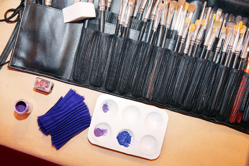 As for that eye, well, Diane Kendal didn’t have to look far for colors, as Jason Wu—surprise!—worked with Lancôme to create the purple pigment used on his girls this season. Kendal lined the eyes with Lancôme Le Crayon Kohl in Purple Dusk, added some Liner Design Gel in Violet Stylista(for emphasis)with a clean brush, and then applied Wu's new Indigo shadow (all we've been told is that Jason Wu's Lancôme collection is “coming soon') into agraphic, exaggerated smoky wing. “Instead of a cat eye that's black, it's refreshing to have one that's a color. It doesn't feel so generic,” Kendal said. “The finale look is a dress made out of this purple fabric and Jason wanted to tie that color in. I think blue is going to be a trend for fall,” she added. (You heard it here first, kids!) “This color is more of an indigo-purple—it has that 'dual' feel to it, it’s not a true blue... It’s more interesting.” No shrinking violets here, that's for sure.