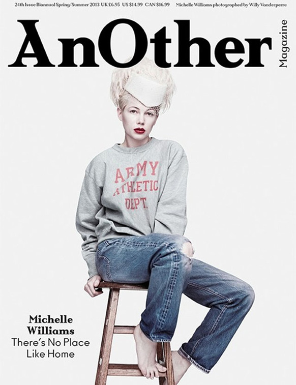 Why does Michelle Williams’ Willy Vanderperre-lensed AnOther Magazine cover feel so right on? Maybe it’s the collegiate sweatshirt and jeans topped with a veiled-hat/red-lip combo (which might be a nod to her role as Glenda the Good Witch in the upcoming Oz: The Great and Powerful). Or maybe it’s the hair-and-makeup magic of Gucci Westman and Jimmy Paul on the inside pages, where Williams channels everyone from an Upper East Side '50s socialite to Andy Warhol’s Candy Darling. That red lip is killer, and, naturally, we had to find out how to get it. Gucci explained via e-mail that she used Revlon’s Super Lustrous lipstick in Certainly Red and topped it off with a slick of Ultimate Suede lipstick in Couture “to make it more punchy [kiss-emoji’s here].”