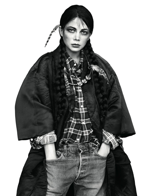 As for Michelle’s transformative prowess in front of the camera, well, we knew she had it down when it came to filmmaking, but still photography is something else. “The amazing thing, the most extraordinary thing about the whole experience, really, is that it’s so rare to have an actress be willing to play around like that,” Paul told us. “That’s the big difference to me. When you’re working with a model, that’s their job, that’s what they do. And they come and they say, ‘Okay, I'm going to be a part of the team.’ But with an actress, you’re working with another element—all of a sudden it’s like there’s another force, another boss. They’re not quite a team player, usually—if that makes sense—and I am by no means trying to sound anti-actress, but if I’m working with an actress, it’s a very, very, very different day than when I’m working with a model. The amazing thing [with the AnOther shoot] was that Michelle was completely the opposite. She was absolutely willing to experiment and play and try a million different wigs and get into the characters and I think she sort of—not to speak for her, of course—but that she approached it like she was acting,”