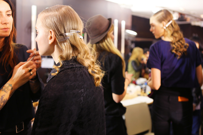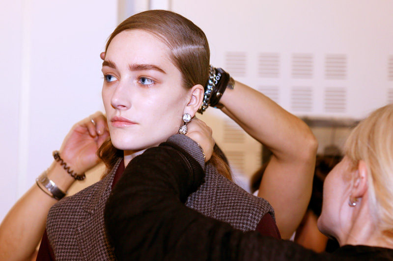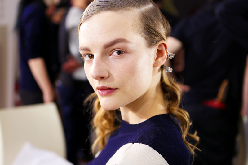 Eugene Souleiman (Wella): There is this new minimalism happening, in the sense of a 'return of to '90s,' to a pure idea. I would say 'bad hair' is good hair, for sure. It’s not about major glamour—that’s a bit tacky and a bit vulgar. The new look is more personal; it’s about contradiction. Everything is very defined this season. Even if it’s not precise, it’s really defined, so if it’s about messy hair, it’s intentionally fucked up hair. It's not about prettiness; we’re in a time where we want women to look more 'intelligent.' It feels like things have really evolved from that vulgarity of over-accessorizing, lots of gold, hardware, shoes looking like cars, handbags looking like banks. We’ve moved on, but we’re going back to something that’s more human. I want you to look at these girls and think, ‘Oh, yeah, they kind of look like a person. They don’t look like a drag queen.’ That overly done-up look is like a men’s version of what a woman should look like, and women really don’t look like that and they don’t want to look like that.