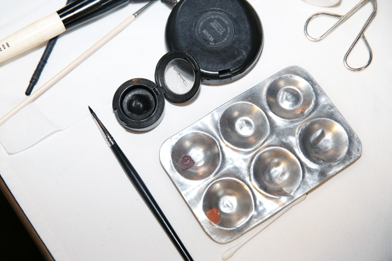 At Donna Karan, Charlotte Tilbury was mixing MAC Paint Pots in Blackground and Reflex Pearlup to the eyebrows, using a smudge of Eight Hour Cream to create a shadow around the eye, as if top-lit: a “Peter Lindbergh-esque modern, shiny quality,” which she considers “ evolved makeup, a furthering of that smoky-eye look Donna [Karan] loves so much,” Tilbury layered more of the black cream tight along the upper lash line and underneath to create the shadow, and the look was done. No eyeliner inside the eye, and no mascara. “It feels more modern this way,” she said. “It makes the whole look statuesque, sensual, mysterious,” Plus, she noted, “The cream gets onto the base of the eyelashes and really makes them look thicker at the root,”