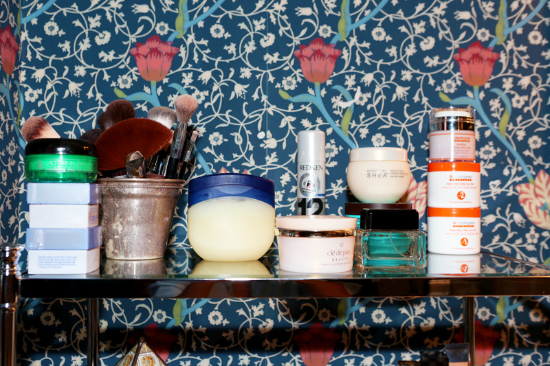 I’m super into a beauty ritual. Like, occasionally I’ll put on Clé de Peau Body Cream, Lubriderm, or Vaseline and Saran Wrap myself. Here’s what you do: you put it all over your arms, hands and feet, put on a pair of socks and then you wrap your arms and your elbows, and then…you go on a jog… [Laughs] Seriously, it just makes your skin so freaking soft, like you wouldn’t believe. The acne medication dries out my skin, so I’m always trying to put moisture back in.