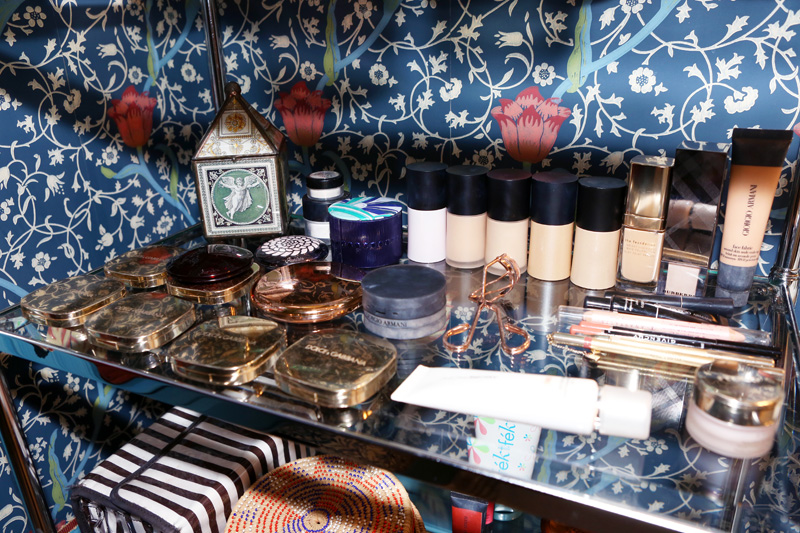 I just began to understand that you have to change your foundation with the seasons, because your skin changes color. I didn’t really get that concept and I remember I went to a Chanel dinner a few months ago and my friend showed me the pictures from the event the next day—and it literally looks like I put a mask of makeup on. I hadn’t gone out in three weeks, and I had been using the same foundation I’d been using during the summer. So, for like two weeks after that, I stocked up on different colors and finishes and just played with them—that’s when I got this range of shades. I also realized I was using a super-dry foundation, and I was like, ‘Why isn’t my face luminous anymore?’ I was really mad. [Laughs] It was not a good night.