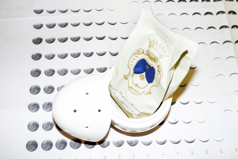 For those still happy to play with (a little) fire: Both Santa Maria Novella and Francis Kurkdjian make gorgeously scented incense papers— the latter’s come in the ITG-beloved flavors Aqua Universalis, Apom, and Lumiere Noir, and are really tellement chic in their little box (matches on one side, papers on the other). The procedure is the same with both: you fold up the paper like a little accordion, light one edge, blow it out, and let the perfumed smoke go, à la incense. Santa Maria Novella's Carta d'Armenia papers are shockingly effective deodorizers (if someone in your flat's been smoking, or is smelly, or your cat has been marking his territory and you just cooked gumbo, whatever), and their little red leather box is very sophisticated looking. Be sure to get some sort of ashtray/saucer on which to burn them, though, because again, please don’t burn down your house.