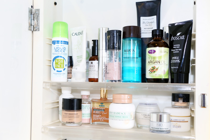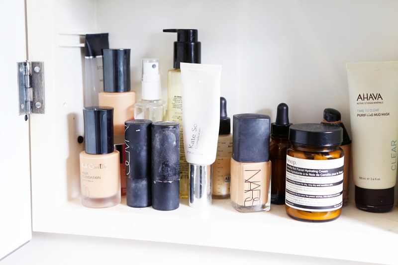In terms of makeup, I’ve been pretty faithful to Koh Gen Do’s Aqua Foundation in OC2 for a while. I think I read at one point that Lauren Santo Domingo loved it, and then I came across it at a store when I was in Tokyo. I was like, ‘Oh, I’ll try this out,’ and they had an exact match for my skin—which is always my main issue with foundation—and I never looked back. I put it on the same way I do moisturizer, or sometimes I’ll use a Beauty Blender, which I’ve gotten into lately—that’s one thing I learned from a makeup artist. I was like, ‘What is that creepy pink thing?’ and then I was like, ‘Oh, I want one!’ [Laughs] If I’m going out and maybe doing something for the blog, I guess I’ll wear foundation. If I’m just bumming around, I won’t always wear it, though.
