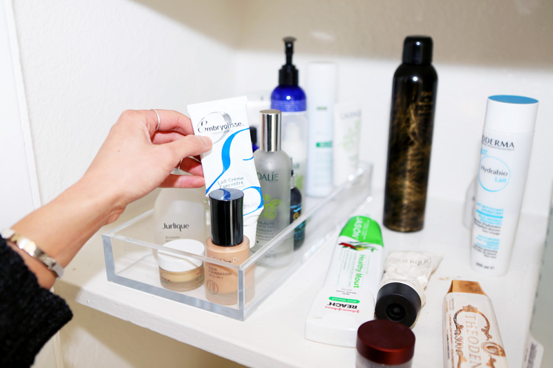 I've found that a lot of the oils that are good for the ends of your hair are really good as facial oils, as well. But I already have slightly shiny skin, so I’d rather just not put oil on during the day. My favorite moisturizer is Embryolisse—it’s a really good texture for day, it’s not super heavy, and it blends in really easily, and works almost like a primer. At first, it was hard to find in LA, but now I just order it on Amazon. They have all of the French pharmacy products on Amazon, it’s amazing.