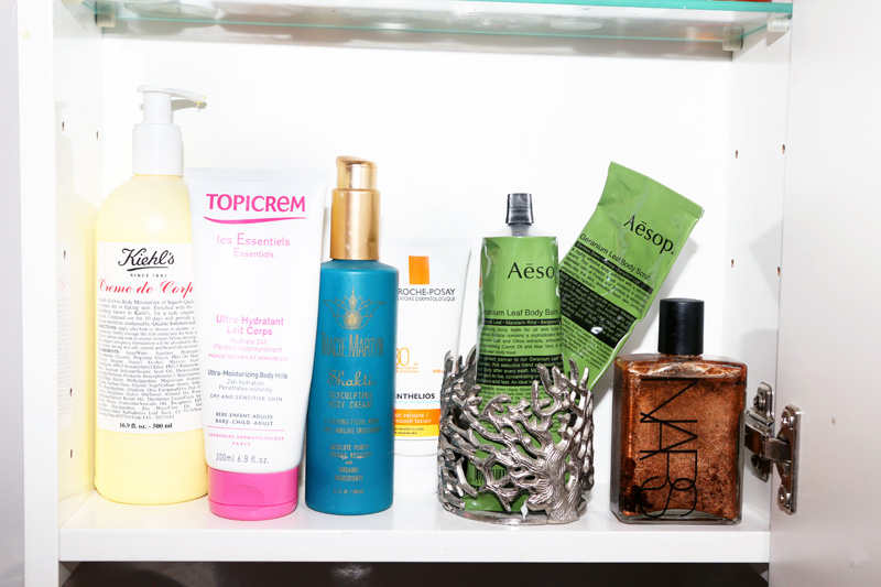 Having to do my own “Top Shelf” is always a great incentive to go through my cabinet and streamline my routine. The truth is, it’s already fairly curated, but there’s just so much stuff (we’re talking several freezer-bags on the floor, a shoebox of makeup wedged next to the sink, and several empty bottles in the shower) in that lil’ old bathroom that sometimes I don’t even want to go in there. Can I get a “Hell, yes!” from my fellow beauty junkies? I sympathize with those Hoarders, I really do.