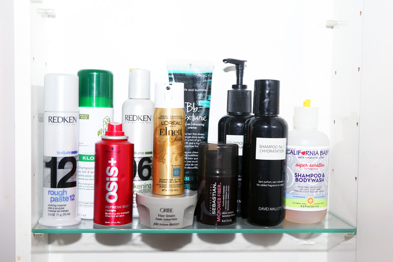 Oh, hair. This might be the first time in my life, I realized when opening my medicine cabinet, that hair products outnumber skin products. And I have a secret: I don’t know what to do with any of them. Okay, that’s being dramatic—shampoo and conditioner, sure—but Microweb Fiber? Refresh Dust? Rough Paste 12? Where are we, Home Depot? Whipping short hair into shape is a whole process where, on a good day, it has just the right amount of grit/hold/volume. There is, unfortunately, a fine line between “textured” and “greasy,” and that line is actually more like a tightrope. Forego all product after a shower and my carefully constructed (thank you, Didier) chop—because, “bob,” really?—naturally parts, stick-straight and shiny, into what I call my “ Argo look.” My clean short hair is simply not cool. And so it’s come to pass that I have a small army of goos and dry shampoos/texturizing sprays that I reach for at random. Oribe’s Fiber Groom, Redken’s Rough Paste, and Sebastian’s Microweb Fiber are all similarly effective pastes, which I generally “cut” with Bumble and bumble Texture cream and rub between my palms before manically running my hands through damp hair. They generally impart a je ne sais quoi, insouciant, vaguely French Girl quality to my ‘do. No matter what you’re using, I think the most important thing is not to use too much—that kills the whole thing, and there’s no going back (unless it’s back to the shower, in which case, it’s all about David Mallett’s super-luxurious, paraben-and-sulfate-free shampoo and conditioner). And once the hair’s finally looking right, on goes a mist of L’Oreal Elnett hairspray.