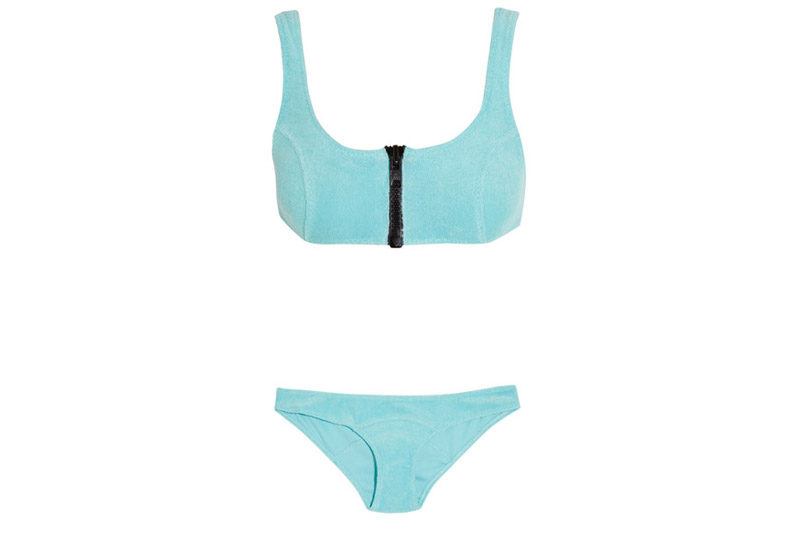 Lisa Marie Fernandez Jasmine Terry Bikini : I mean, how pretty is this color? And in terrycloth? On a side note: Nick saw Lisa Marie slip into Serge Normant for a blowout on Wednesday and text-blasted me: “Lisa Marie Fernandez is fucking FASHION,” “So glamorous,” “Like insane,” and, “Amazing dress. White lace Alaïa? Can you wear Alaïa? Please?” … Sure, give me your credit card.