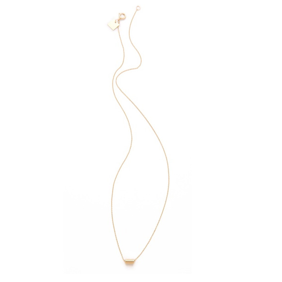 Ginette _NY's Mini Straw Necklace : Why does “statement necklace' seem to always mean loud and huge? I would think it's something you'd wear every day, something delicate and simple enough to go with everything and you never have to take it off—like my smattering of Catbird rings— thus becoming your statement. You should be wearing it, it should not be wearing you.