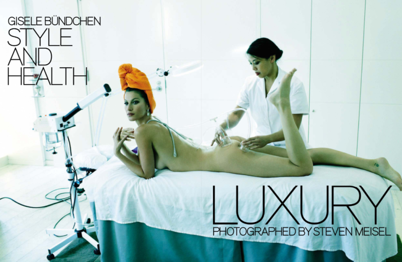 Leave it to Vogue Italia to present Gisele Bündchen as you’ve never seen her before. Almost every inch of the 5’ 11 supermodel has been publicly paraded—including this month’s Vogue Brasil, where her yes-I’m- that-Super post-baby body was said to have motivated Testino’s cover shoot—but Meisel’s voyeuristic spread in the Italian mag hitting newsstands today offers what we'll call unprecedented intimacy (yes, we've seen the Pirelli calendar, trust us on this). The Health and Beauty cover story shows Bündchen posing in various states of undress at a spa, while receiving treatments both ancient (her nearly-nude limbs strike a sphinx-like pose while she undergoes cupping therapy) and cutting-edge (the mother-of-two is practically shown inside out getting a blood facial). We love a bare-faced Gisele as much as Gisele, herself, enjoys being makeup-free, but Pat McGrath's imperceptible hand is enough to make a girl drop everything and book a facial. Though we're sure that we can credit 99% of Gisele's allure to genetics, it is somewhat relieving to think that perhaps, for the mere price of a home mortgage, it could be bought. Maybe vampire-inspired technology could make us grow a few inches, too? A girl can always dream.