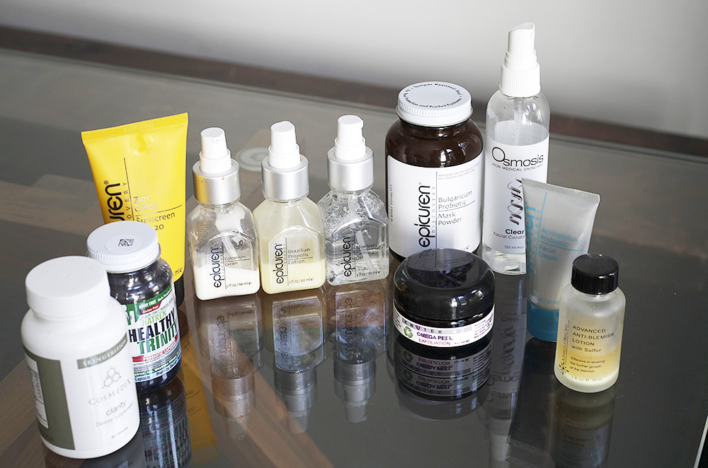 More than anything, Anna helped me understand my skin: why it acts out, how to prevent problems, and what to do when they do occur (without being aggressive). For example, because of my liver issue, Accutane would do way more harm than good for me. Anna and I have a long-term plan, a big part of which is consistently taking probiotics. I take Natren Healthy Trinity capsules, available at Whole Foods. What else?