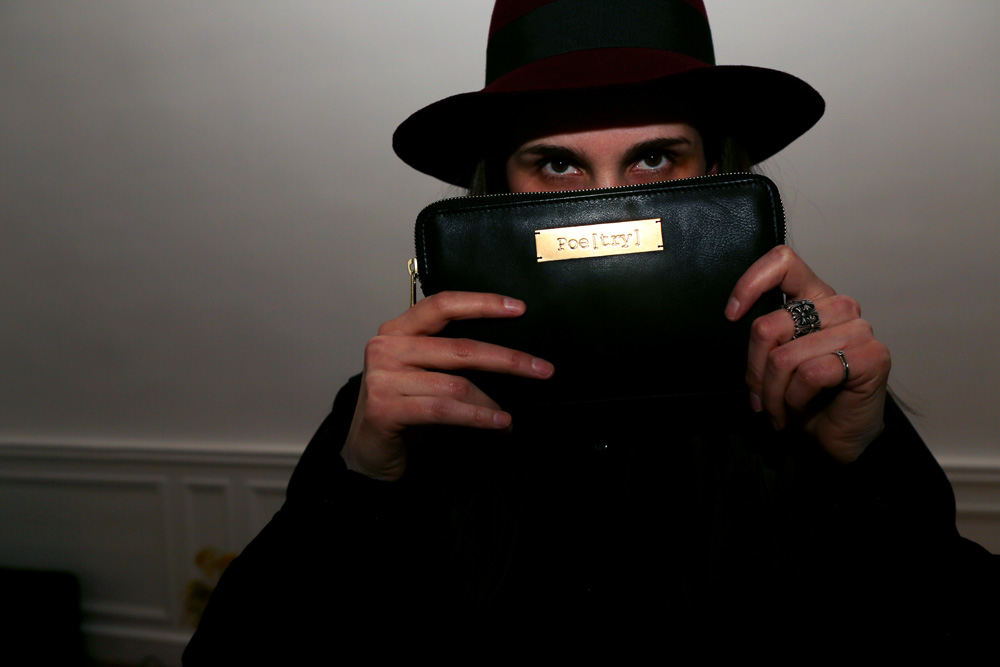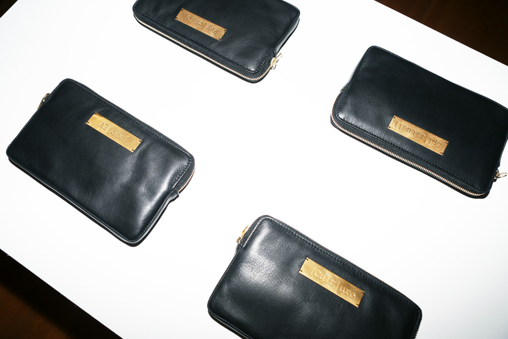 The brand has a feeling of 'less is more.' I’m really, really, tired of having too many choices. People are so completely lost in choices, and since you have to choose a word to have inscribed on the pouch [either “poe(try),” “pain(ter),” or “Ameri(can “], I thought it was too much to also have to choose a color, so everything is black. I like to keep things simple.