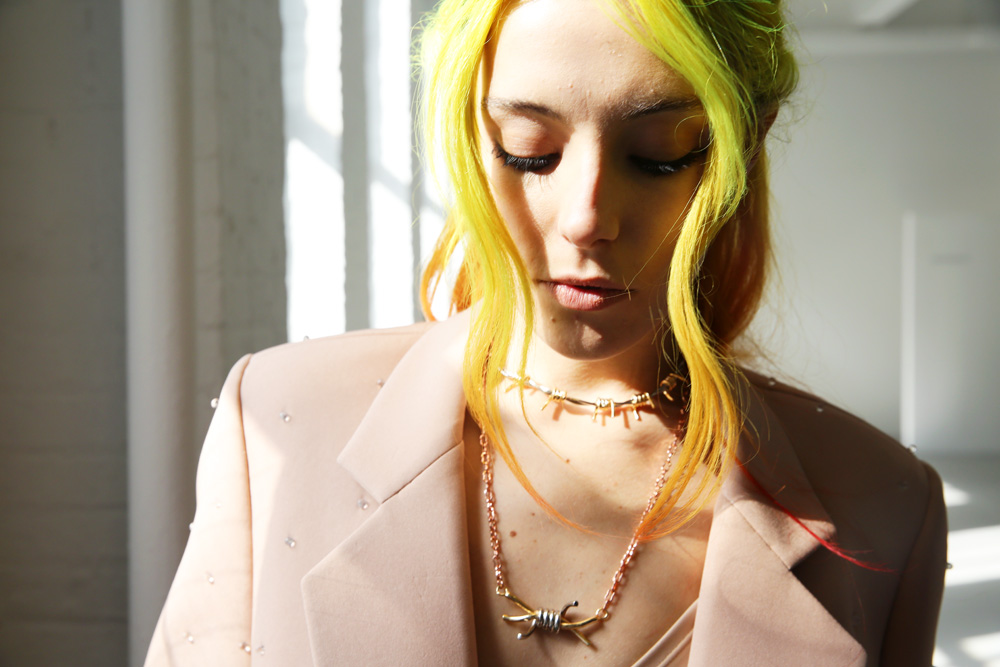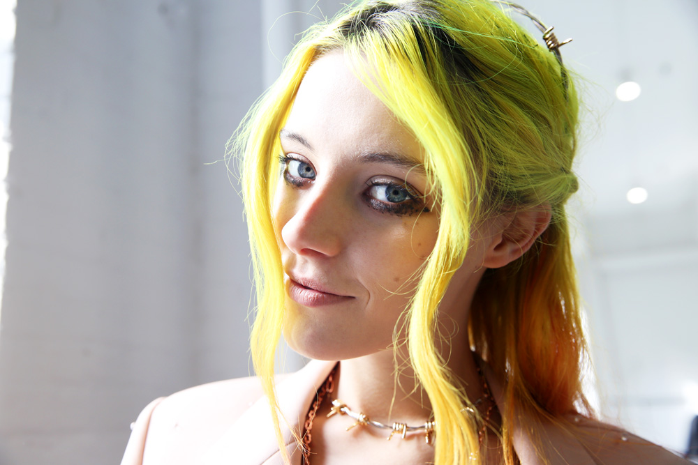 I’ve been dyeing my hair like this for almost a year and a half. I used to dye it all different colors in high school, but I went blonde when I started modeling. Then, all of a sudden, I got really sick of the industry and everything. I was like, ‘OK, I’m going to be myself,’ and I dyed my hair blue. At first people were freaked out, but now they’re open to it, and I have fun with it. I change it a lot.