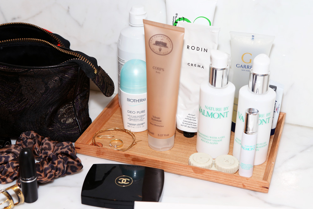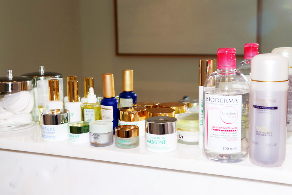 I think everyone’s best accessory is their skin. I use Bioderma Crealine to take my makeup off, and I wash my face with Nature by Valmont Cleansing with a Gel. Then, depending on how my skin is feeling, I either do P50W by Biologique Recherche, which is so good — so good — or Prime B-Cellular by Valmont. Then, I use the Valmont Moisturizing Face Cream. My facialist, Angela at Total Skin, uses Valmont products, so now I do, too. I’m open to trying new things, but Valmont is working, and it doesn’t make me break out, which happens with a lot of products because my skin is very sensitive.