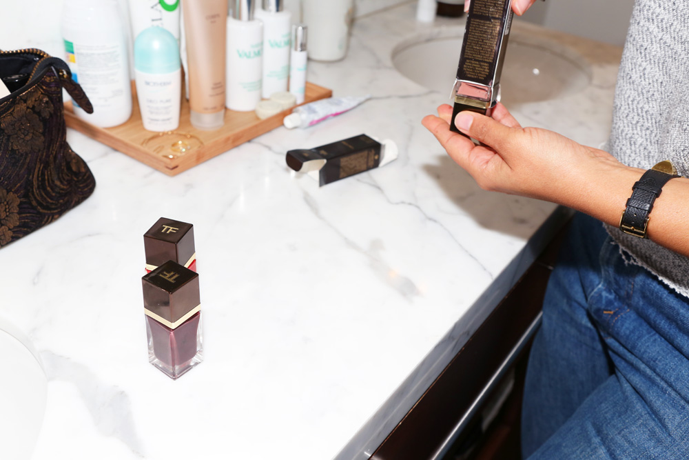 On my nails, between manicures, I put Rodin Hair Oil on them. I have always worn red or nude polish: Tom Ford Scarlett Chinois, Bitter Bitch, and Mink Brulée are classics.