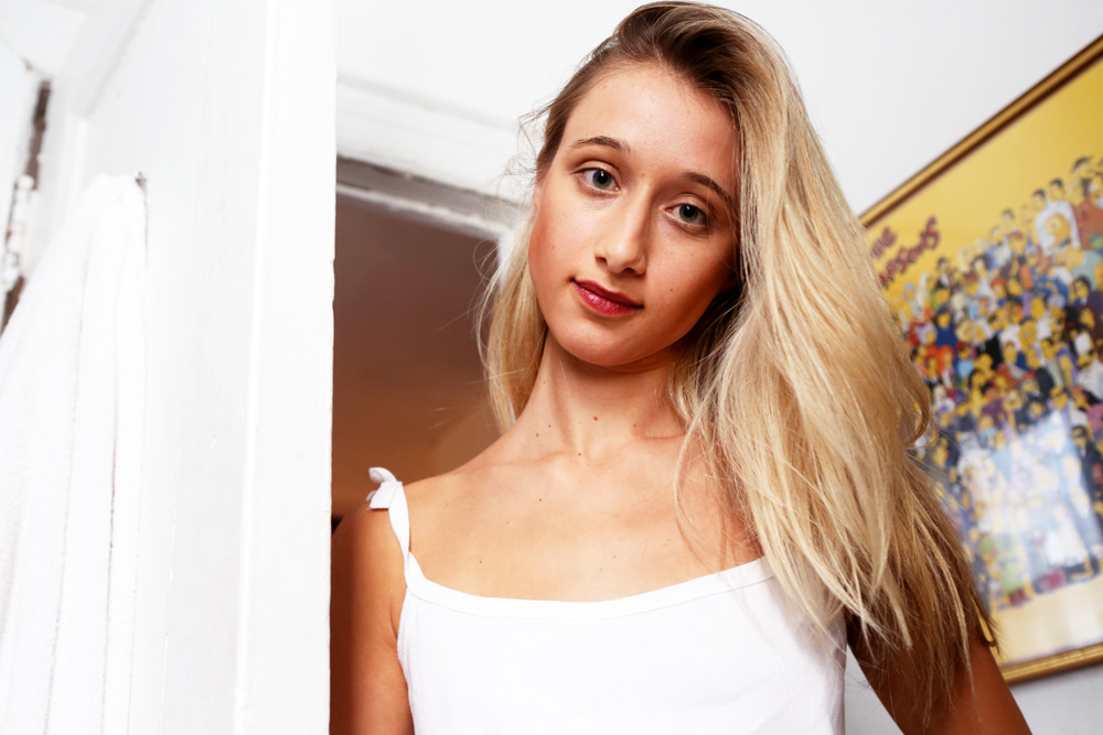 For day, I’m really diligent about sunscreen on my face. I wear SPF 30 by La Roche-Posay and I wear a visor. See, I want my hair to get lighter from the sun, but I want to keep my face covered. And I walk everywhere, so I need major coverage. I’m actually really bad about sunscreen on my body, though. I like to tan—it’s horrible, because it makes me look healthier, but it’s not actually making me healthier. I know I’ll regret it. I’ll put on SPF 30 at the beginning of the day but I never reapply that. Later, I’ll put on Amazing Maui Babe Browning Lotion, which is an oil—not self-tanner—and it smells like a cookie. And I like Bain de Soleil Orange Gelée SPF 4 sunscreen, as well. I just love the smell so much I wish they made a perfume version of it, and the sheen is awesome. It’s like what retirees wear—I got it from my grandmother.