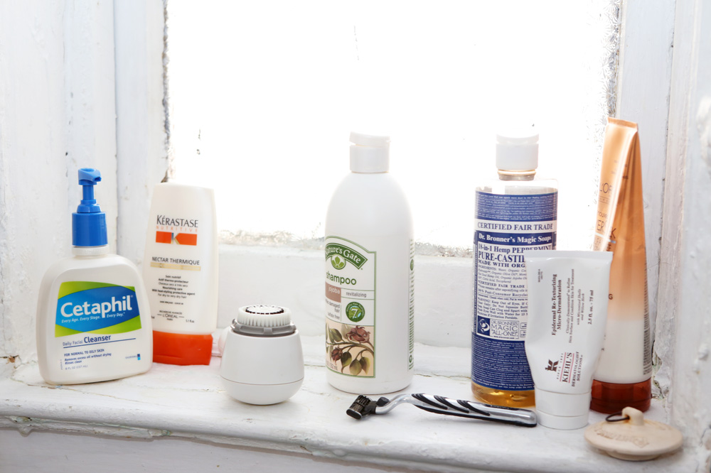 In terms of skincare, I use a Clarisonic in the shower with Cetaphil Daily Facial Cleanser, the one for oily skin. That’s probably not the correct cleanser for me, but I learned that the other, cloudier Cetaphil for normal skin is what they use to approximate semen in movies, so I just can’t. [Laughs] And also I exfoliate a few times a week with Kiehl’s Epidermal Re-Texturizing Micro-Dermabrasion. To moisturize at night, my favorite cream is Embryolisse Crème Anti-Âge Raffermissante, which my sister gave me in a suite of French pharmaceutical products she picked up while she was studying there last year. I like it because it smells like a clean mom, and it doesn’t have any stickiness or tackiness. And every evening I use NARS Total Replenishing Eye Cream in hopes of getting rid of under eye circles—I’m not so worried about future wrinkles—but I don’t think it does anything. Maybe it does? I’m kind of agnostic about beauty products in general; I don’t really know if anything works. But I’m charmed by faux beauty-product science, like I love those ads where a fake camera zooms into a hair follicle and engorges it. I mean, how would a lotion ever get rid of under-eye circles? But I still put it on every night.
