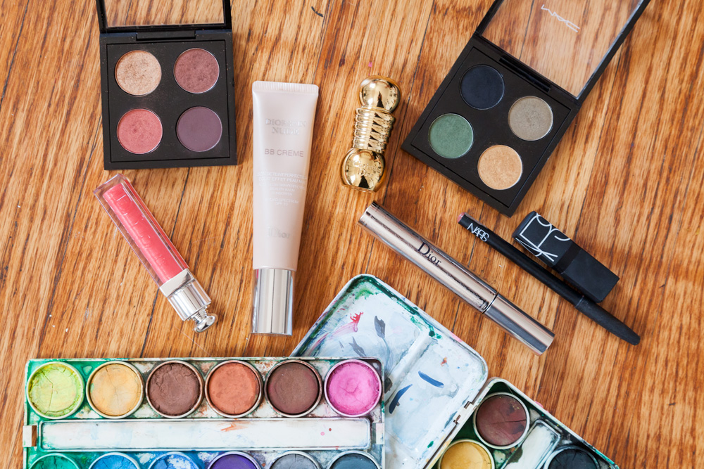 I wear so much makeup in my self-portraits that, in real life, I prefer not to have a lot on. In the summer, I just use Diorskin Nude BB Cream to even out some of the spots, a light coat of DiorShow Iconic Mascara—it’s the best because it doesn’t clump—and lip gloss. I like Dior Addict Lip Gloss in Diablotine, or just Osea Eyes & Lips cream, because even when I go out, I try to keep my makeup low-maintenance. Sometimes I’ll do a darker lip in a berry— Diorific—or a red— MAC Ruby Woo—but lately I’m more into the berry. To give my lips a bit more pigment in my portraits, I fill them in with the Nars Dolce Vita Velvet Matte Lip Pencil and then put lip gloss over it.