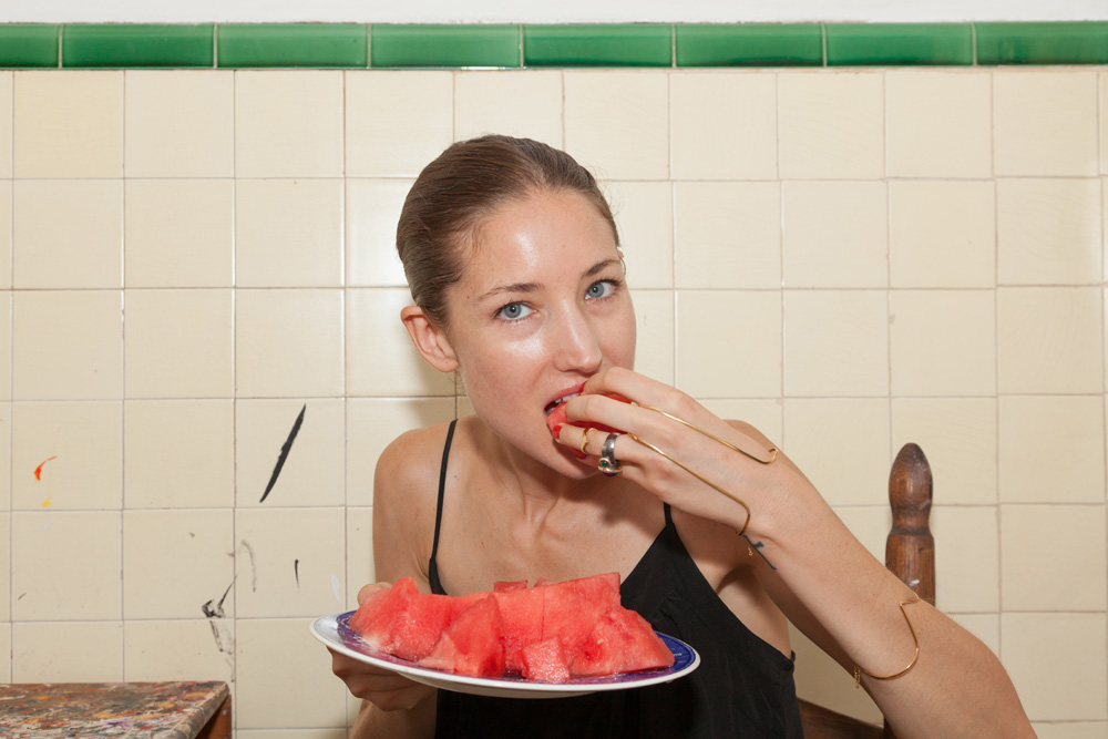 I’m a mostly self-taught artist. I studied design, and within design school they do teach you some fine art, but I’ve never taken a photography or painting class. But fashion illustration led me to doing self-portraits, organically. I didn’t love the way the classic fashion figure looked in my illustrations at Parsons—it didn’t excite me—so I started taking pictures of myself to give my fashion drawings a more realistic size and dimension.