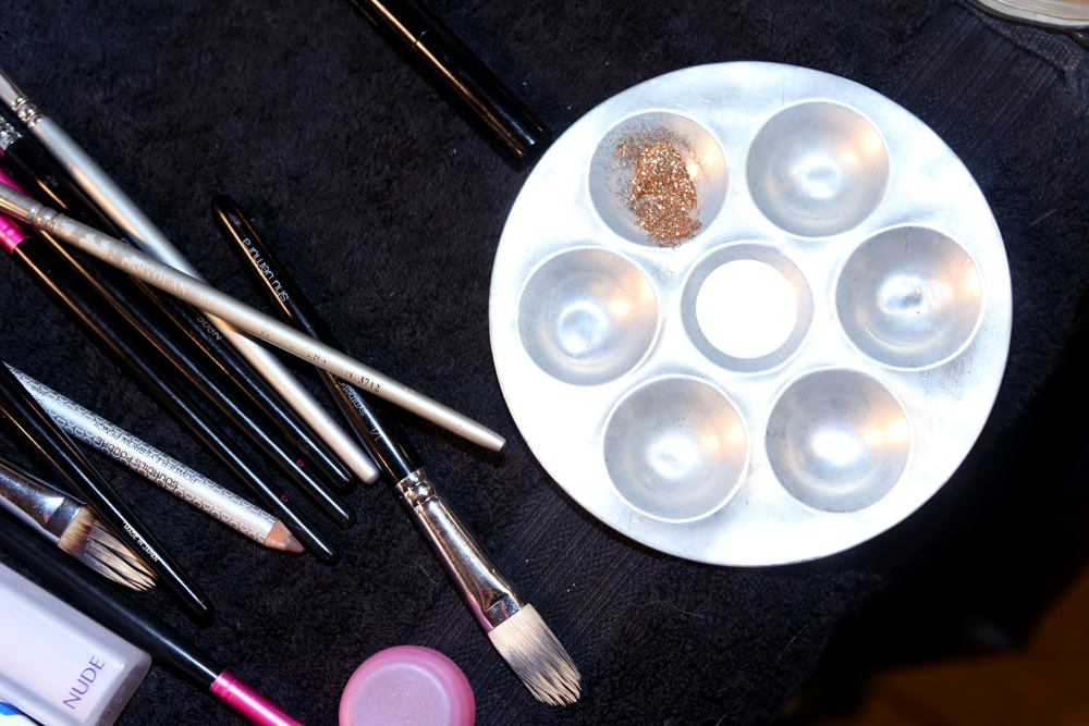 Diane Kendal: “The eye makeup has a Marlene Dietrich feel. We lined the lids with Lancôme's Le Crayon Khôl in Black Coffee and blended it. And then we went over that with a brown eye shadow from Lancôme's Shadow and Liner Palette in Bronze Amour. On the center of the eye, we added a rose-gold glitter, which, of all of the metallic glitters, has more of a summery feel; it’s beautiful. And we finished it with Art Liner in Noir very close to the lashes, some Hypnôse Star Mascara, and an eyelash curler.”