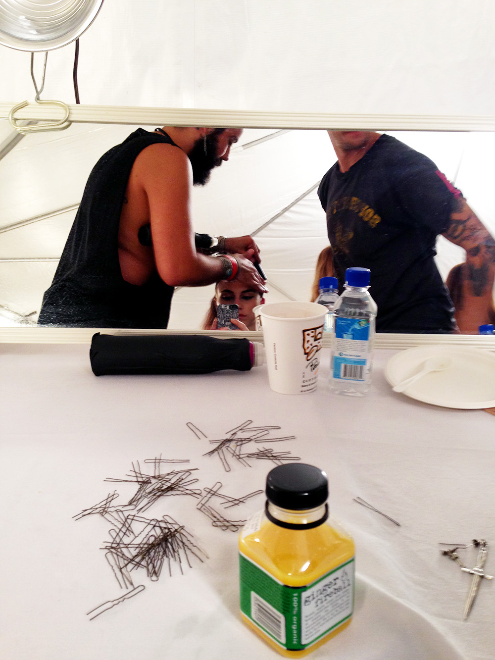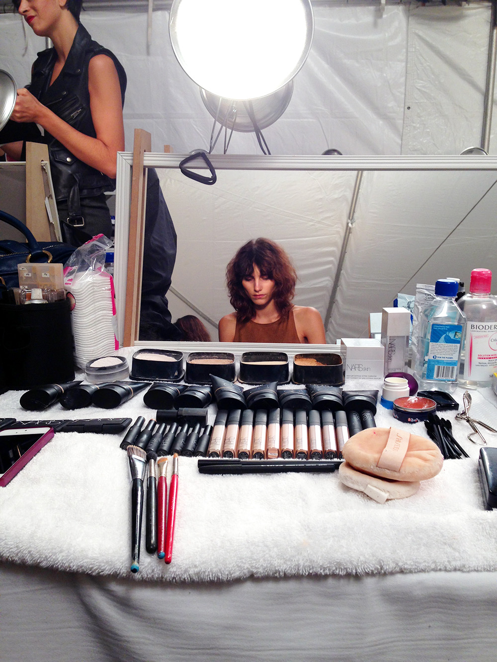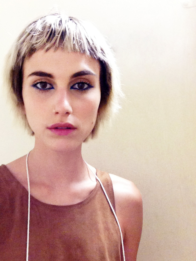 Well, to begin with, walking in a fashion show has always been one of my biggest fears. I was really surprised when I was asked to do the show, so I can't really tell you why I was picked. I feel like Marc Jacobs enjoys people that have obscure looks, but, I mean, I don't know if I am that obscure. All I know is the room was filled with fascinating faces, each with specific, 'weird' characteristics—but maybe that's just a model thing... Anyway, I spent the days leading up to the show wondering if I was actually doing this; it has been a whirlwind of emotions. And I was told you never really know if you'll be in it until you're actually on the runway, so I kept telling myself I wasn't in it. Then, when I had my final fitting—and, an hour later, was scheduled to be in hair and makeup—reality finally clicked in and panic took over in full-force...so bad that I was shaking and nervously eating in the corner by myself (also, some press dude thought it was funny and started filming me). In terms of the 'look,' the makeup was kept pretty simple other than the liner—some girls had blue and others had green eyeliner put at the edges of the eyes and slightly smeared outwards with a whole lot of mascara. By keeping the rest of the face clean, the eyes really made a statement. Especially with our short blonde wigs with dark roots and the boyish silhouettes of the clothes, it was kind of an androgynous look. But back to my nerves: I was pretty bad up until we had a rehearsal and I realized I knew how to walk in a straight line (!) and I really wasn't doing anything that difficult. From then on, I was pretty chill. The moment of the show was great—I just kept staring at the back of the girl's head in front of me, pretending as though I wasn't in front of a massive amount of people (to my advantage, I tricked myself pretty efficiently). Also, the model in front of me was the cutest little creature-like girl, and there's nothing I love more than a weird character, so I was easily distracted. All in all, I'm really stoked I did it and I'm even considering that hair cut....