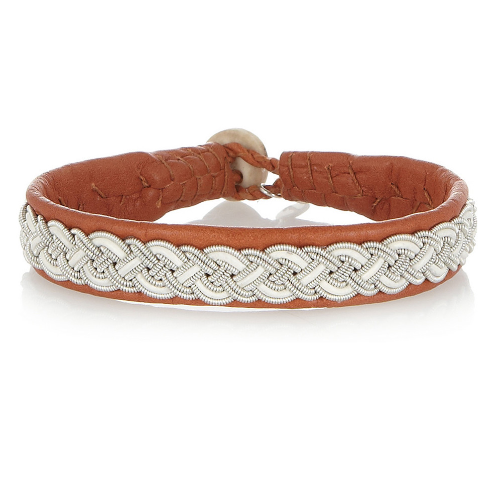 Maria Rudman Embroidered Leather Bracelet : These are like the adult, leather-and-pewter version of a friendship bracelet. No box-stitching skills necessary.