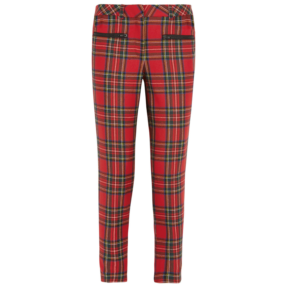 Karl Lagerfeld MacPherson Tartan Wool and Faux Leather Pants : Let’s begin with the 'real' and 'traditional' tartan plaid, used here by Kaiser Karl. The punk inspiration is loud and clear—grab some heavy black booties, a chunky black sweater or a crisp white button down, a leather jacket, and some kohl eyeliner and you’ll be ready to fight the aristocracy with the best of ‘em.