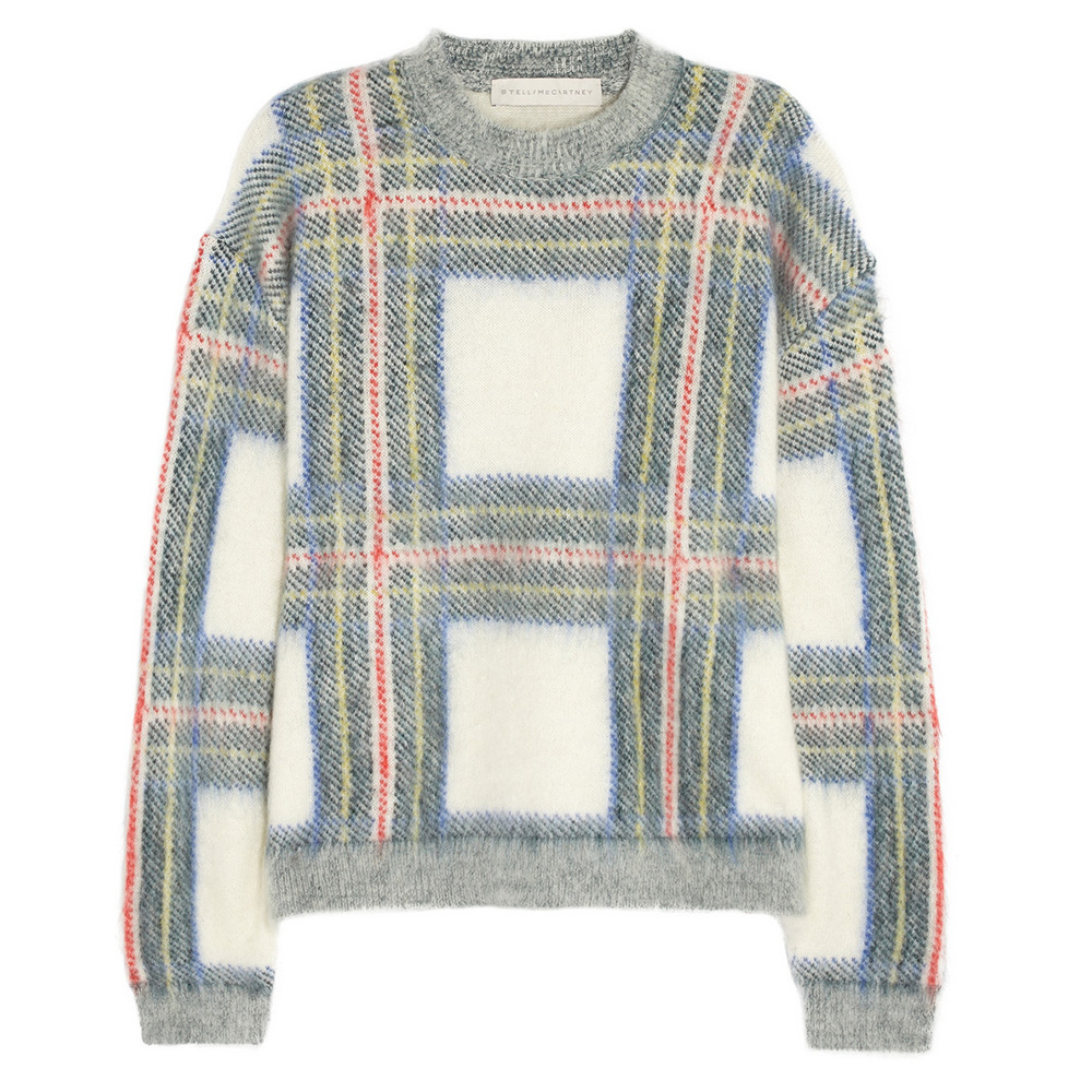 Stella McCartney Plaid-intarsia Knitted Sweater : Stella, in her everlasting wisdom, put a spin on plaid, enlarging the print to emphasize its clean lines, fine detail, and touches of color. Plus, the oversized mohair-and-virgin-wool sweater will keep you warm in cooler weather.