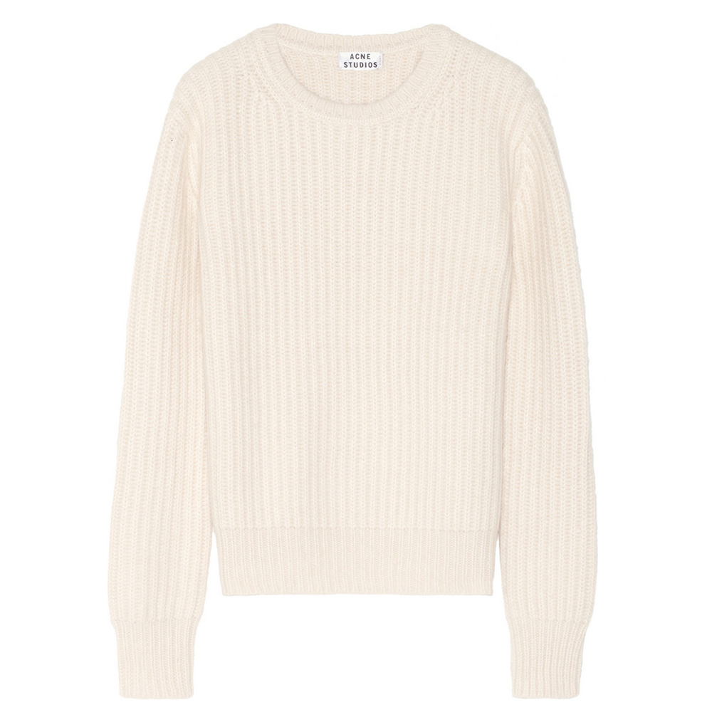 Acne Rakel Chunky-Knit Angora-Blend Sweater : A good chunky sweater is arguably the most important item in your fall wardrobe. But finding one that will keep you warm and looking slim (i.e., not like the Pillsbury Doughboy) is effing hard. Acne’s take on the fisherman sweater is both cozy and cool, and its creamy hue will lighten up tough leather (or dark denim) bottoms.