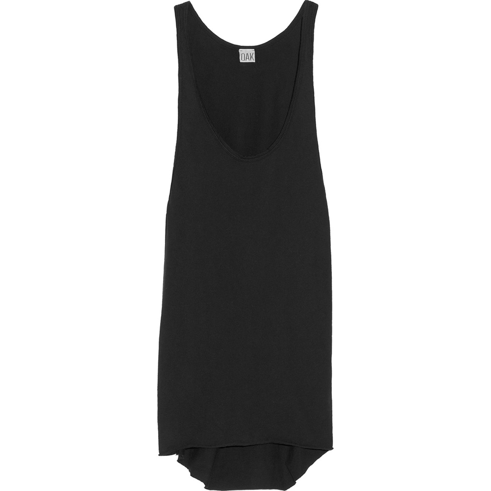 Oak Draped Cotton-Jersey Tank : We all know the woes of walking into a bar and immediately regretting having worn a heavy, long-sleeved shirt. But if you start with a thin tank top base, like Oak’s low-cut gem, you can treat yourself to a breeze in any stuffy situation.