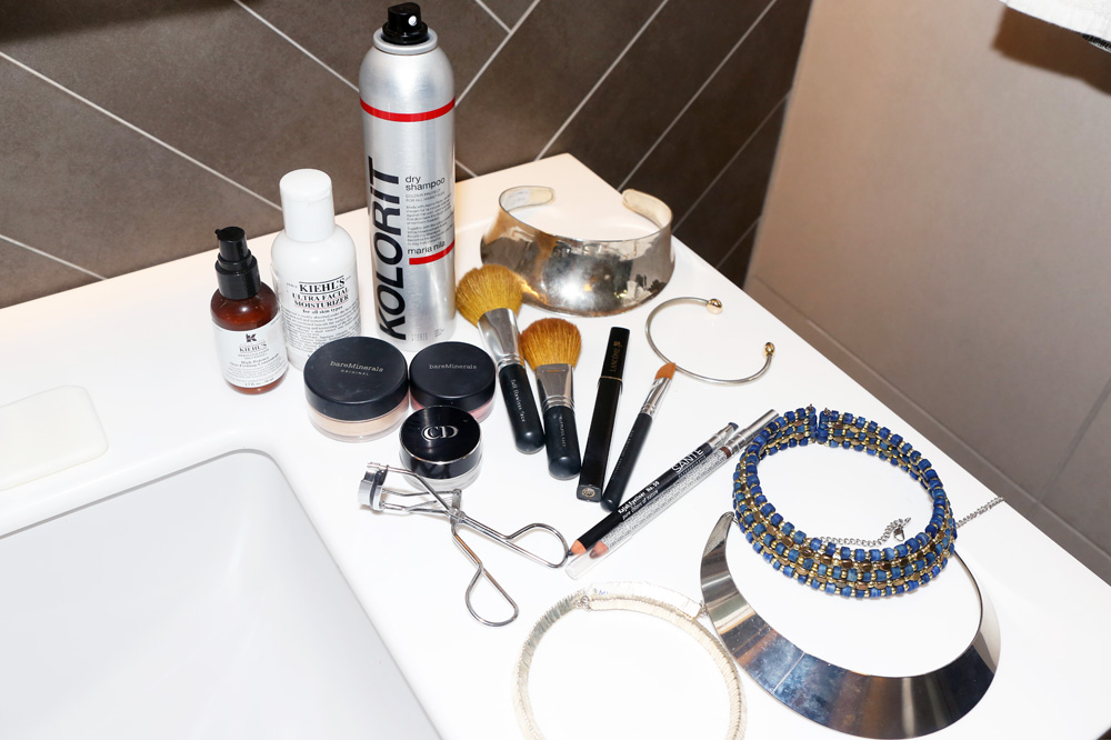 I start by moisturizing my face—I don’t want it to be too greasy or too dry. For deep moisture, I use Kiehl’s High-Potency Skin-Firming Concentrate. I think it’s supposed to help with wrinkles, but I haven’t started to think about that yet. It’s just really hydrating. And I like the Kiehl's Ultra Facial Mosturizer because it really doesn’t make your skin greasy, but it keeps it moisturized all day.