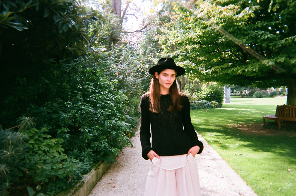 Alba Galocha, in an Acne sweater, Thakoon Addition pants, Surface to Air boots, and a La Favorita hat, photographed by Nick Axelrod in Paris on September 27, 2013.