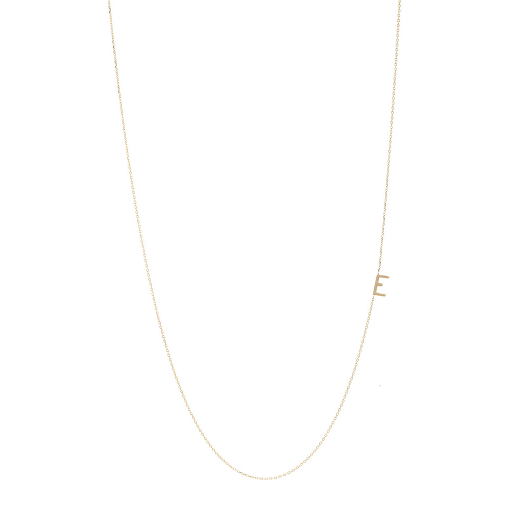 Bianca Pratt Gold Initial Necklace : Pratt’s delicate single letter on a gold chain is the sophisticate’s Carrie Bradshaw nameplate necklace [3]. Whether you go with one letter, or full force with a three-necklace-stacked monogram, these subtle chains are a modest way to wear your name (or that of a child, pal, more-than-a-pal, etc) quiet and proud.