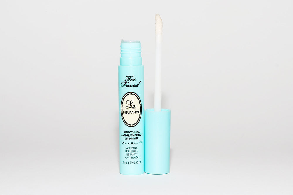 Step Two : Now the actual application begins. To ensure long-lasting wear, a primer is key. (Primers, they're not just a marketing ploy!) With a few swipes of the Too Faced Lip Insurance Lip Primer wand, you’ll have the optimal adhesive surface, making for easy application and all-day/night wear.