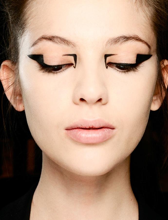 Lucia Pieroni: “When you curl your lashes and add mascara, you lose that area of the eye, and it’s actually quite beautiful, I think. Mascara can be very pretty—it helps make a very doll-like eye—but if you're trying to get a strong message across, and you do strong makeup and then “pretty' eyes, it's not the most powerful thing.” [Rochas Fall 2013]