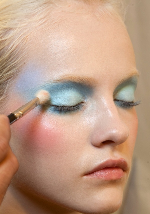 Lucia Pieroni: “We’re using an eye shadow, the Eye Color Quad in #208, and putting it on the lid and underneath the eye so you can just blend it out. It’s not actually about the eye shadow, it’s about giving the eye, itself , a slight shadow.” [Rochas Fall 2013]
