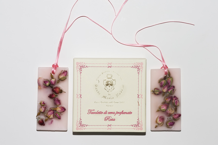 Santa Maria Novella Rose Wax Tablets: Delicate cakes of pink wax sprinkled with dried Tuscan rose buds to hang amongst your girliest dresses