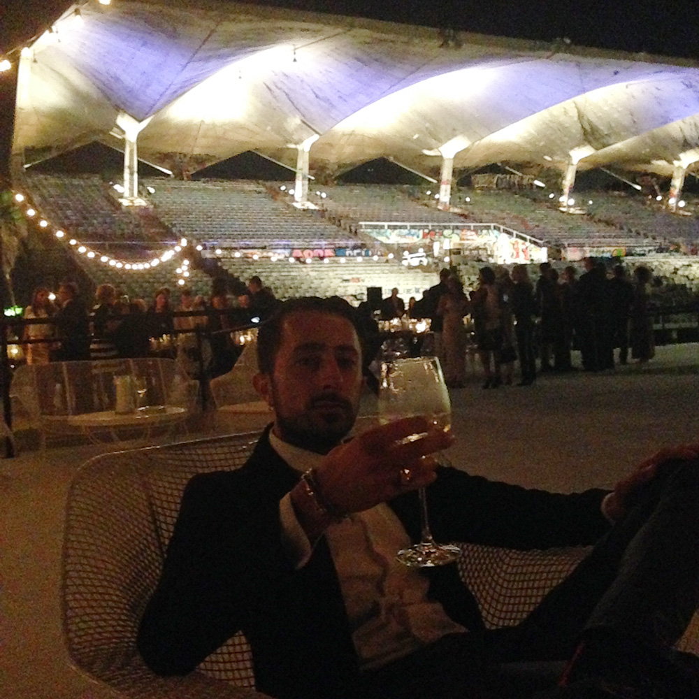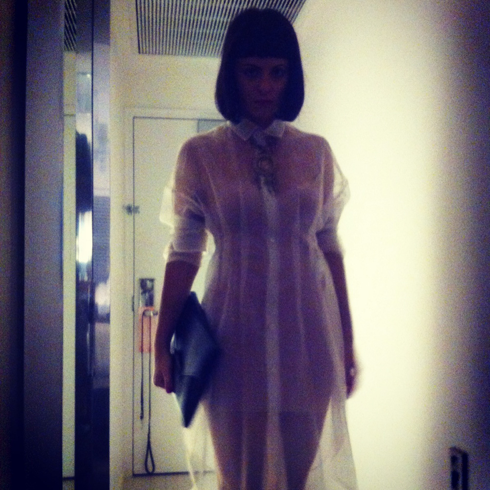 My look for night one, a Julien David dress [2]. I attended the Audemars Piguet dinner to celebrate their inaugural year as the major sponsor for Art Basel. The dinner was set on a floating platform on the water overlooking an abandoned stadium. The highlight of the evening was the bazillionaire man next to me who busted out his iPhone to show me the island he'd just bought that was, as he described, larger than all of Manhattan.