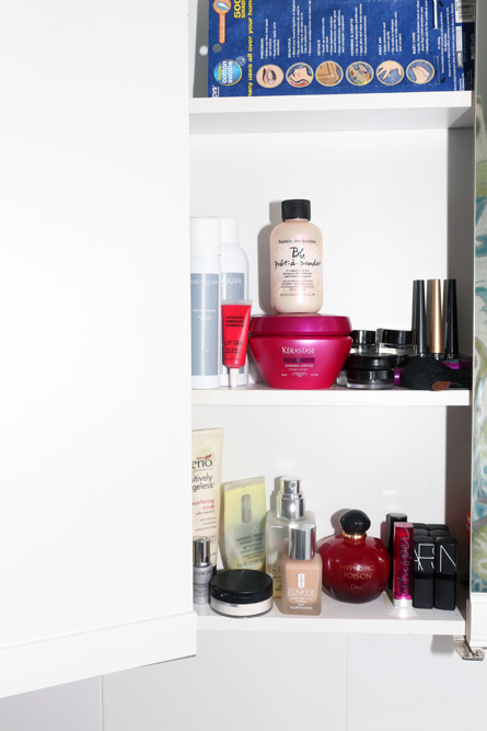 If I’m going to wear lipstick, I’ll usually wear Nars. I have a lot of it: Funny Face, Manhunt, and Heat Wave, which is an orange-y red. I need more; I would have endless Nars if I could. Otherwise, for a peach-y pink, MAC’s Sheen Supreme Lipstick in Full Speed is good, and goes on easy. If I'm doing a photo shoot, Obsessive Compulsive Cosmetics Lip Tar in Anime is so fun. And then when I’m on tour I end up just wandering around a lot and buying cosmetics at places like CVS, which brings me to this Maybelline Color Whisper in Cherry on Top. It’s a great, sheer gloss. I can’t wear sticky gloss on stage because my hair will get stuck in it and that doesn’t look good. [Laughs]